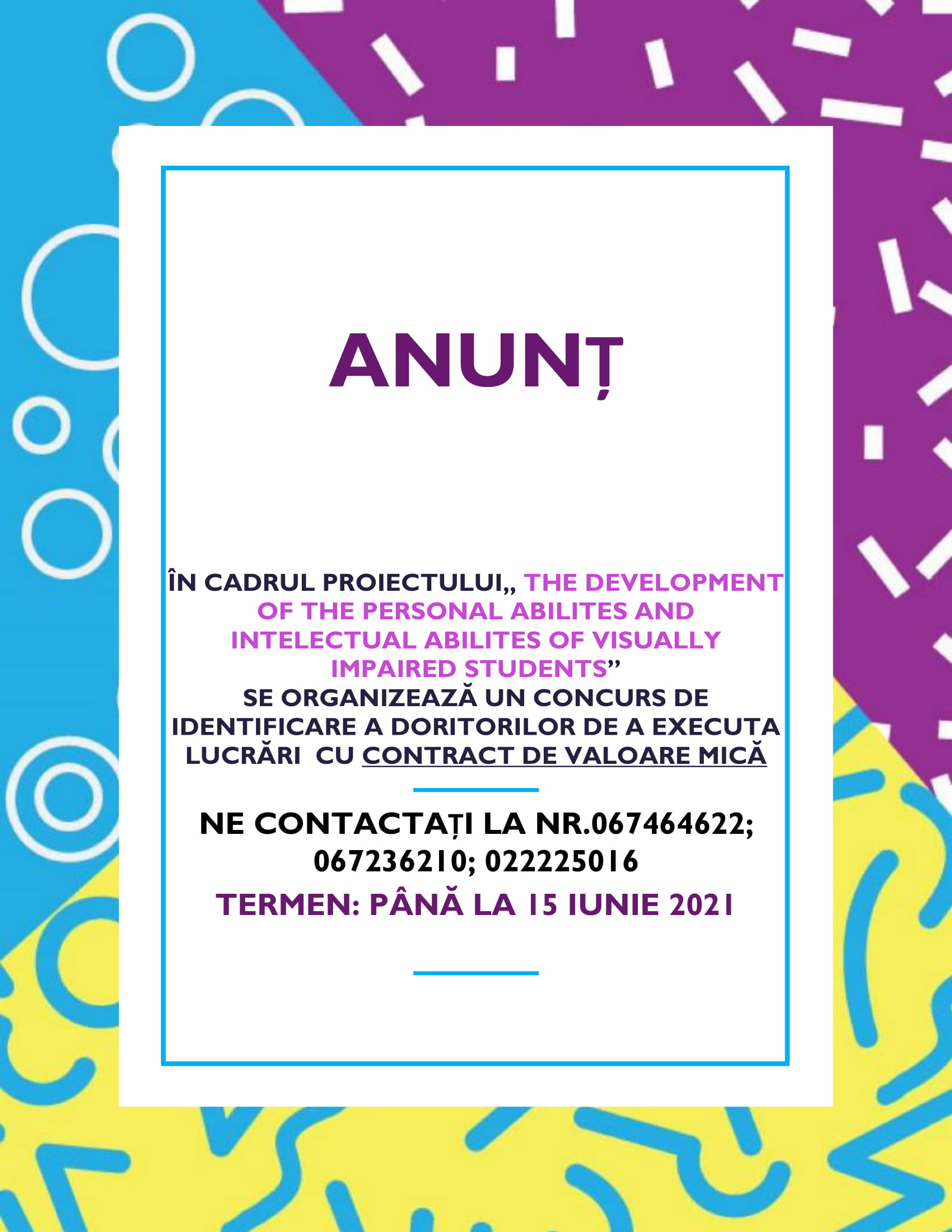 Anunt cu organizarea concursului pentru contract de valoare mică
